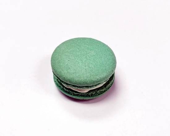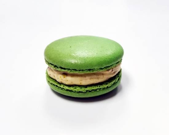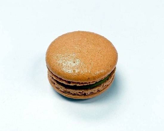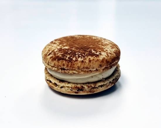Cocoa dusted coffee flavored macaron shell with tiramisu buttercream filling