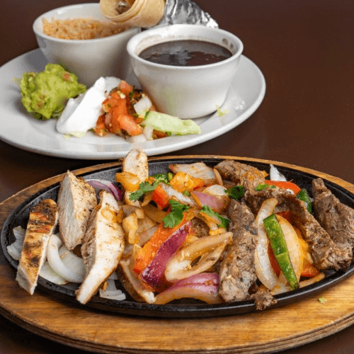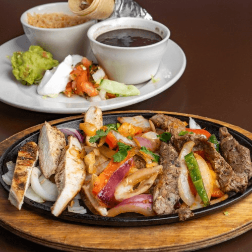 Fajita Chicken sauteed with grilled peppers and onions, served with sour cream, pico de gallo, guacamole, rice and beans with 3 tortillas. Available at Memorial Day special pricing!