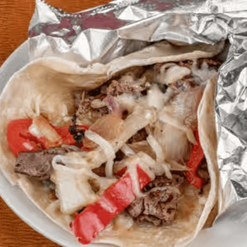 Succulent ribeye sautéed with onions and bell peppers, topped with queso
