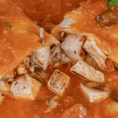 Fajita chicken or beef stewed in our famous hogados sauce (spicy) mixed with Monterey jack cheese