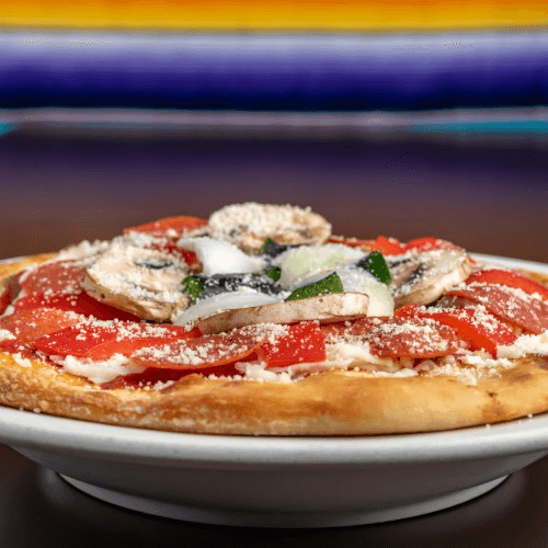 With guacamole, pico de gallo and mushrooms. Add chorizo, ground beef, chicken, fajita beef or shrimp for an extra charge