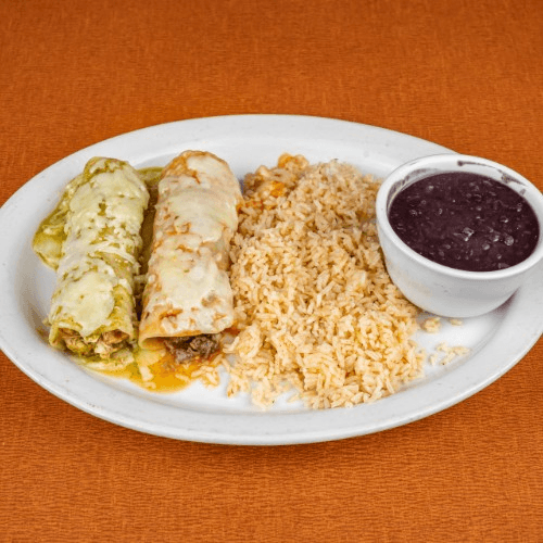 With guacamole, sour cream, pico de gallo, rice and beans, and 2 tortillas. Drink included with lunch specials.