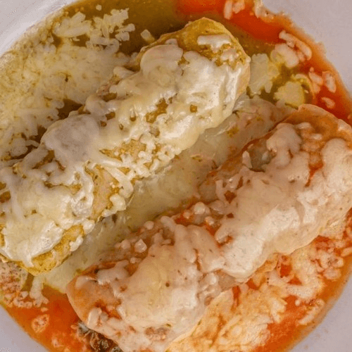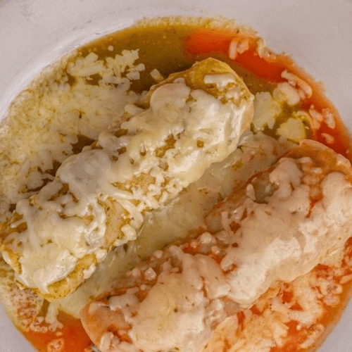 Two chicken taquitos, choice of two tamales and choice of a 1/2 quesadilla served with guacamole, sour cream a pico de gallo. No substitutions