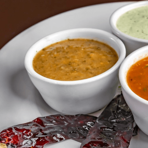 Three per order. Crispy corn tortillas stuffed with chicken, served with guacamole, sour cream and pico de gallo
