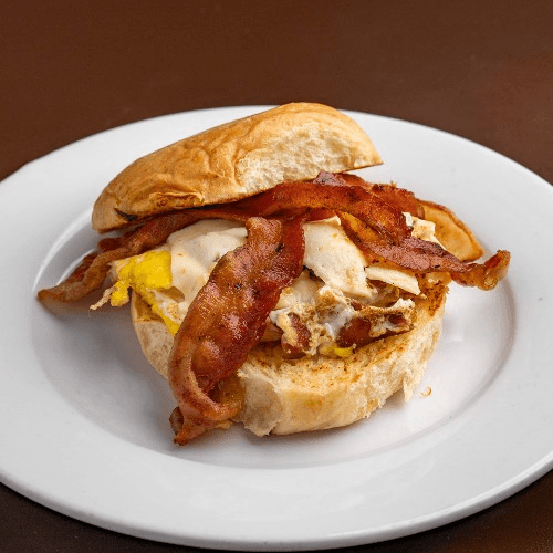 Scrambled eggs and Pepper Jack cheese served on a jalapeño cheese bun with choice of bacon, sausage or chorizo