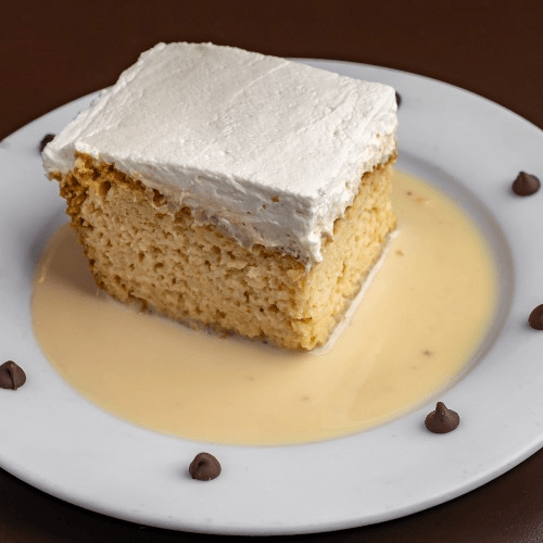 Homemade 3 milk cake with a hint of rum & vanilla and hand whipped cream icing